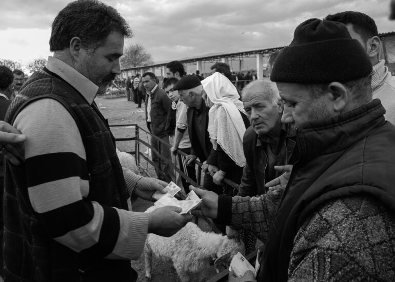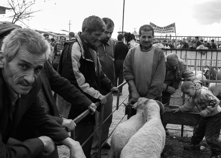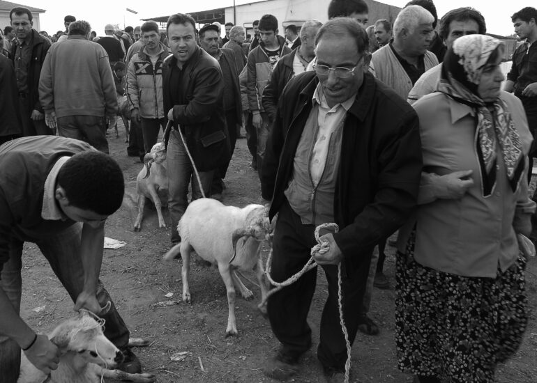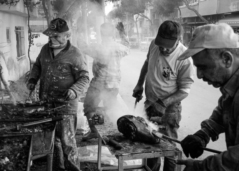 Sacrifice is defined as an act of worship to thank God, to show gratitude and belief in his existence. However, sacrifice is also an act of worship in which animals are slaughtered. Before Eid al-Adha, people go to the markets to buy sheep to be sacrificed. The sheep purchased from the sacrificial markets are taken home or to slaughterhouses to be slaughtered on the first day of the feast. The sheep are slaughtered by saying the Word of Allah. It is delivered to its owner. In the Aegean region of Turkey, there are people who iron the heads of the victims. They iron them over a fire to remove the hair on the head. This work tells the story of sheep and their owners who sacrifice them as a sacrifice to thank Allah.